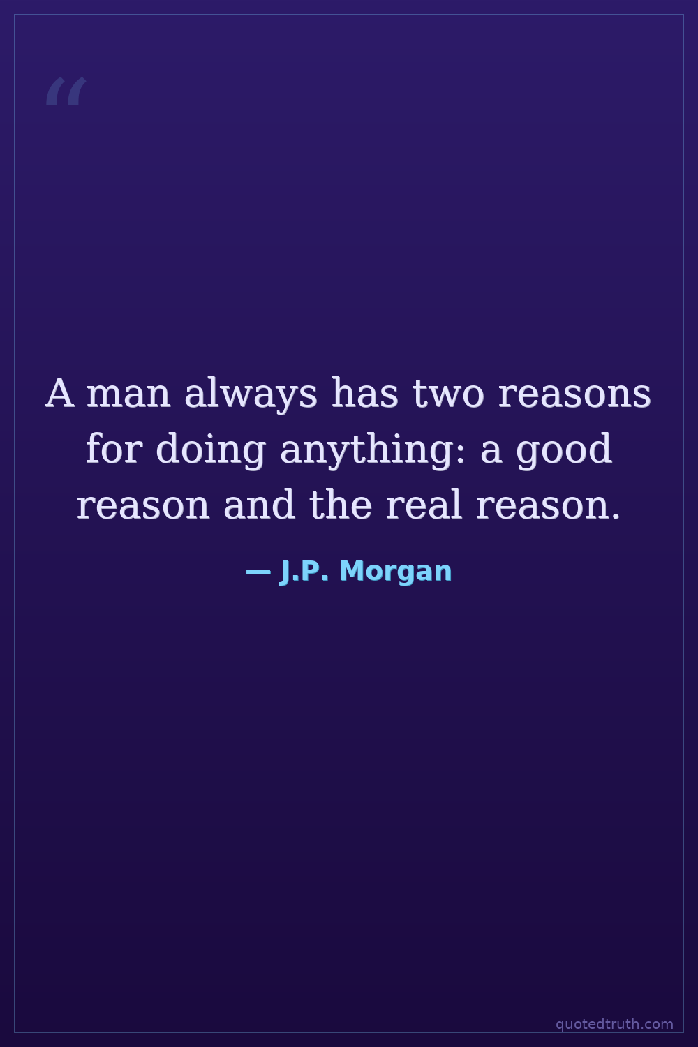 A man always has two reasons for doing anything: a good reason and the real reason.