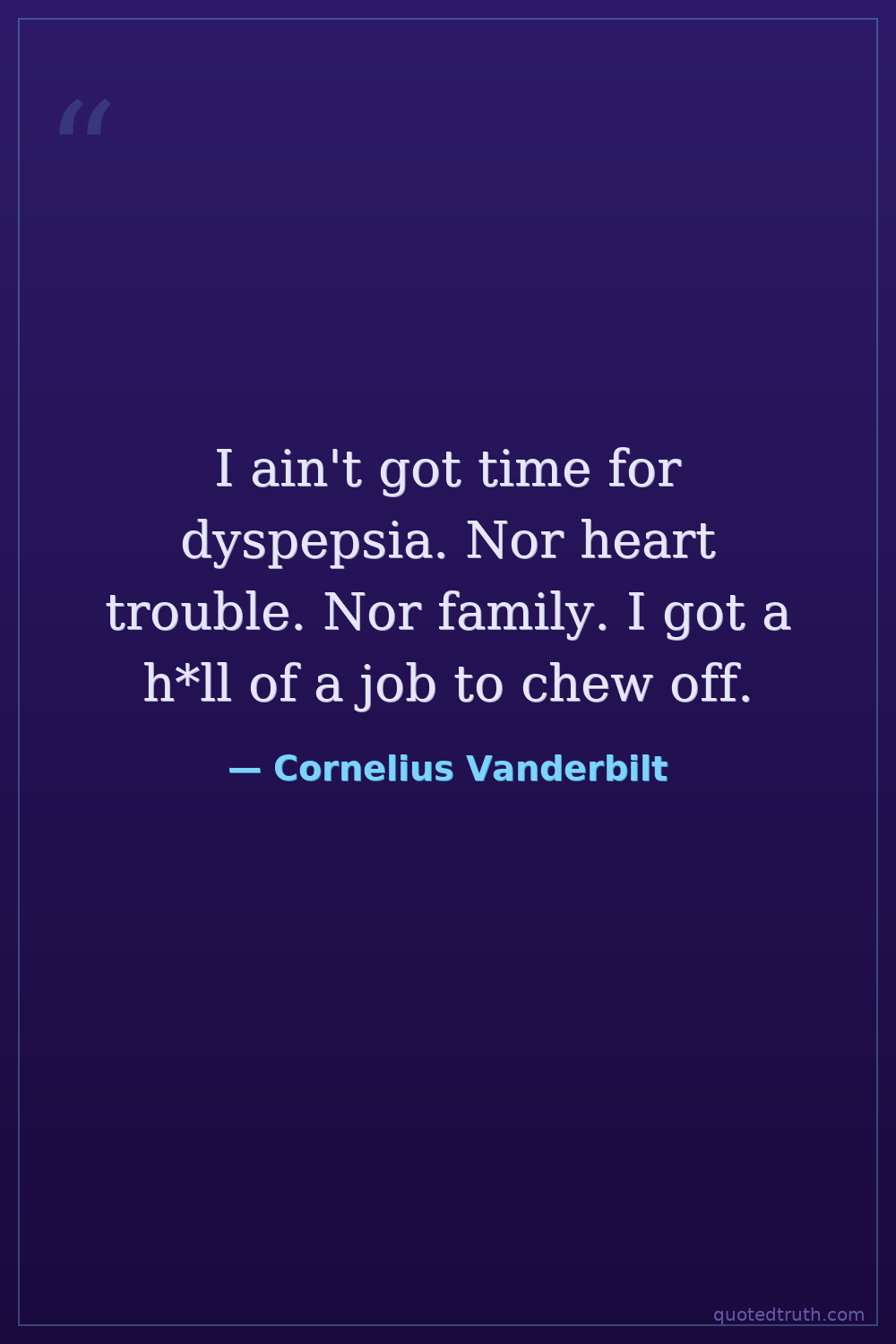 I ain't got time for dyspepsia. Nor heart trouble. Nor family. I got a h*ll of a job to chew off.