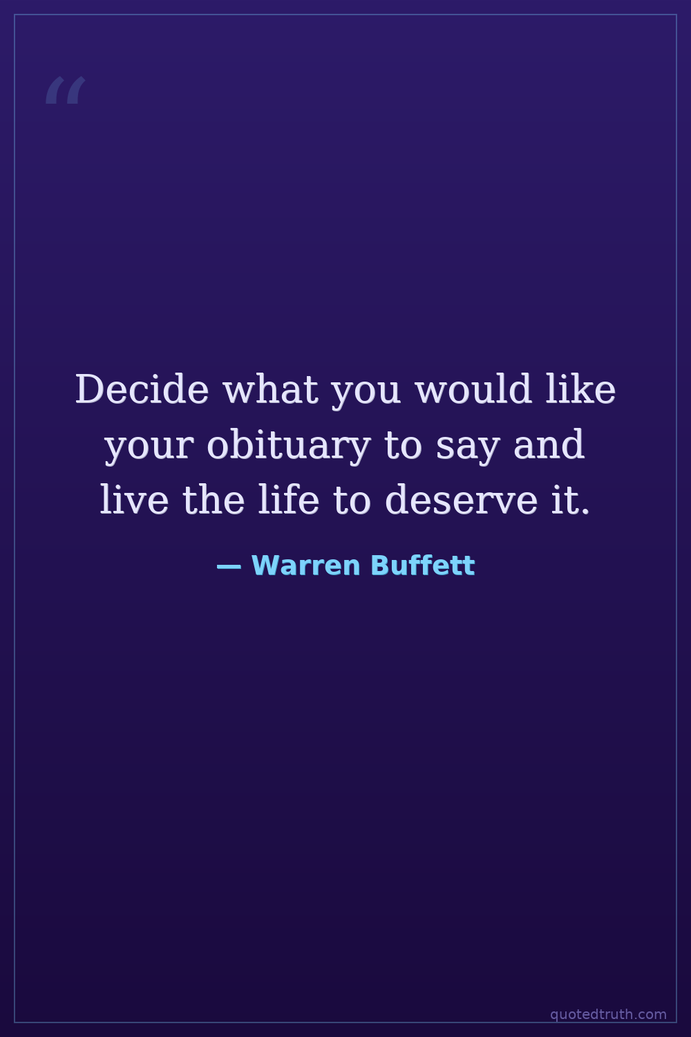 Decide what you would like your obituary to say and live the life to deserve it.