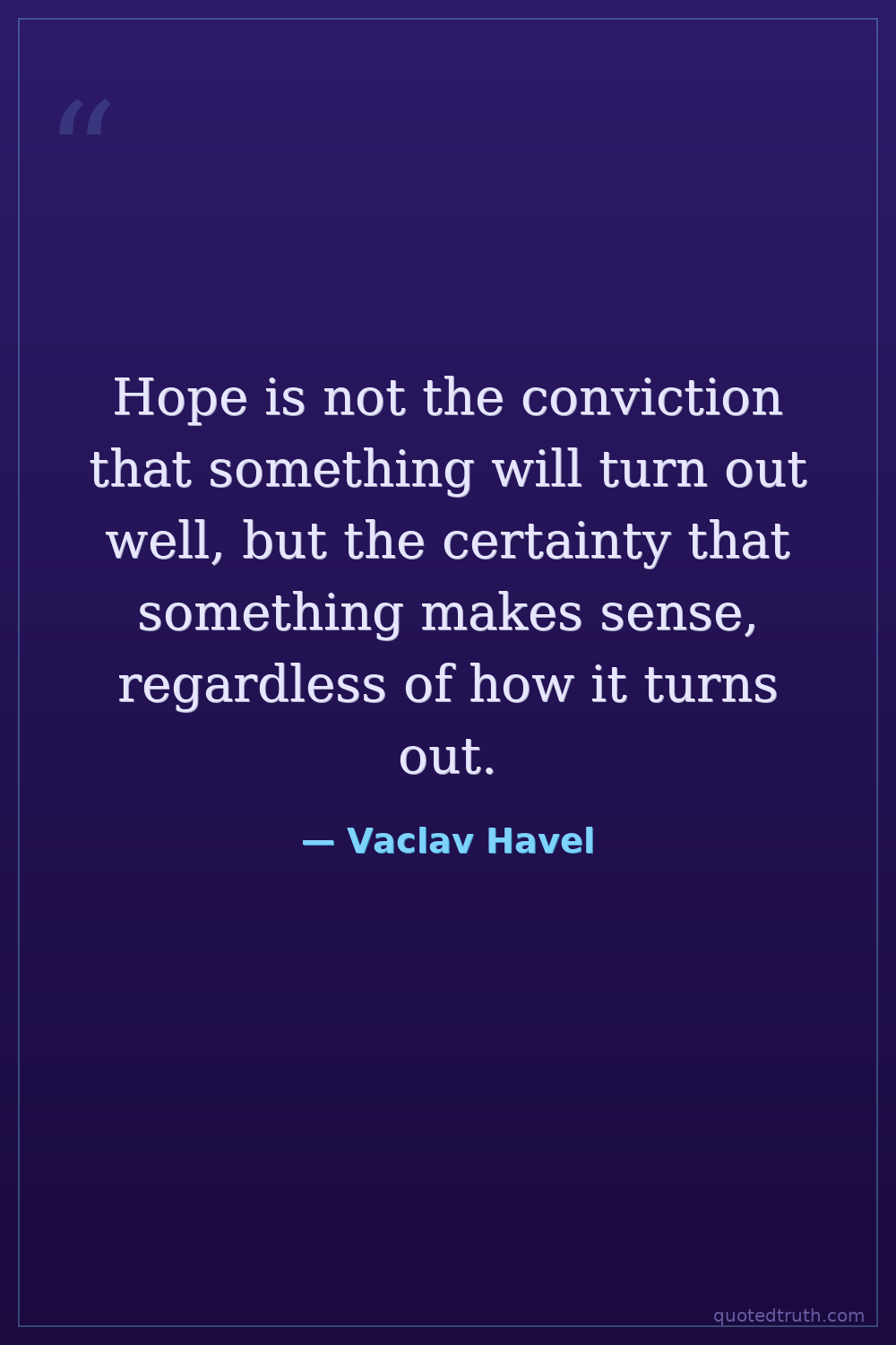 Hope is not the conviction that something will turn out well, but the certainty that something makes sense, regardless of how it turns out.
