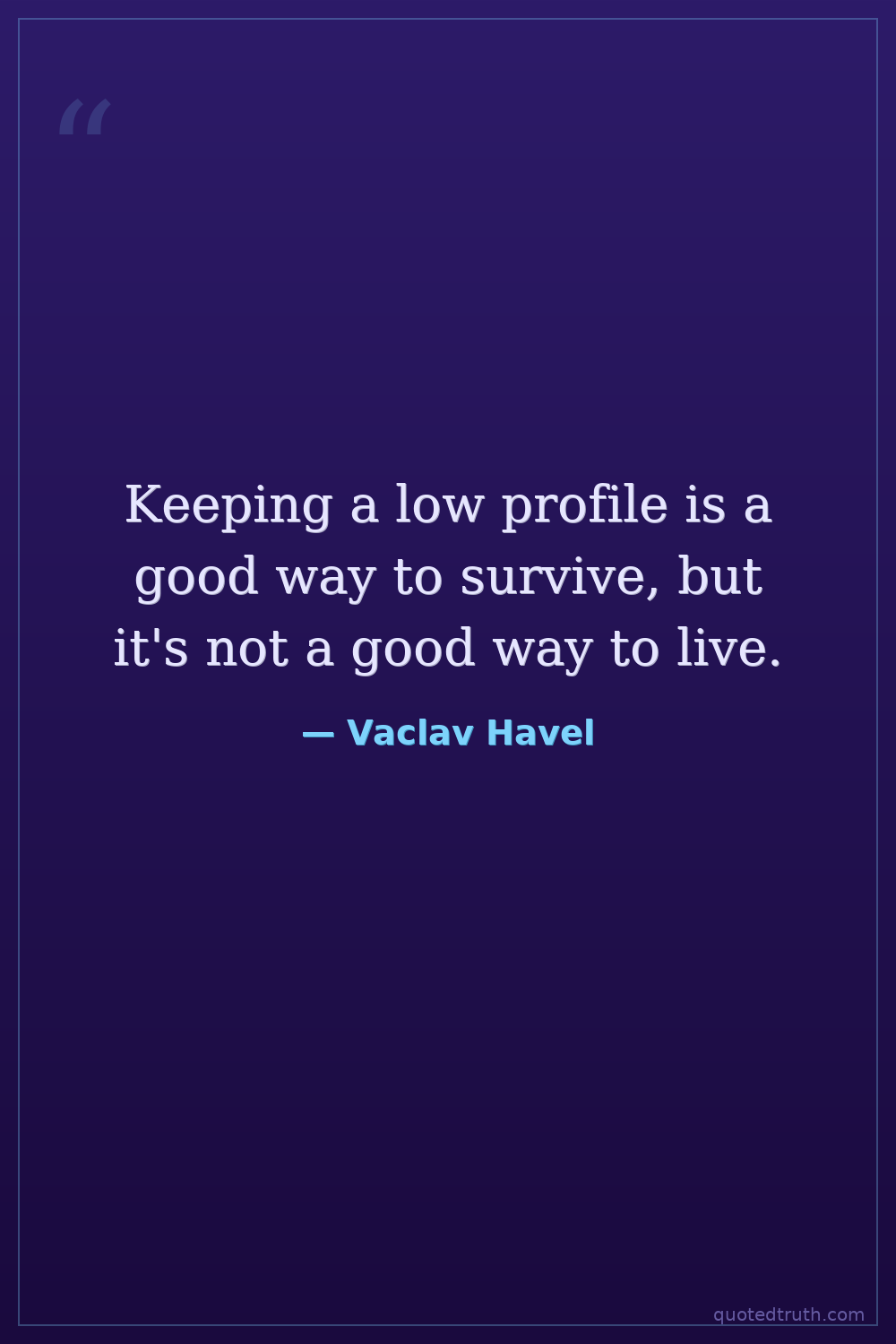 Keeping a low profile is a good way to survive, but it's not a good way to live.