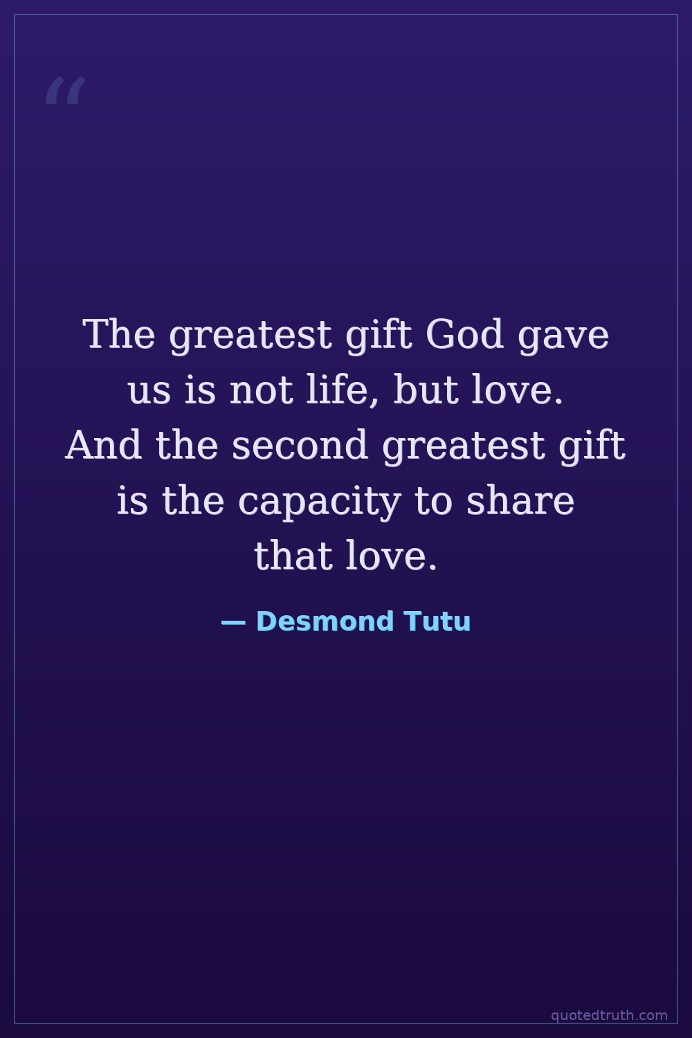 The greatest gift God gave us is not life, but love. And the second greatest gift is the capacity to share that love.