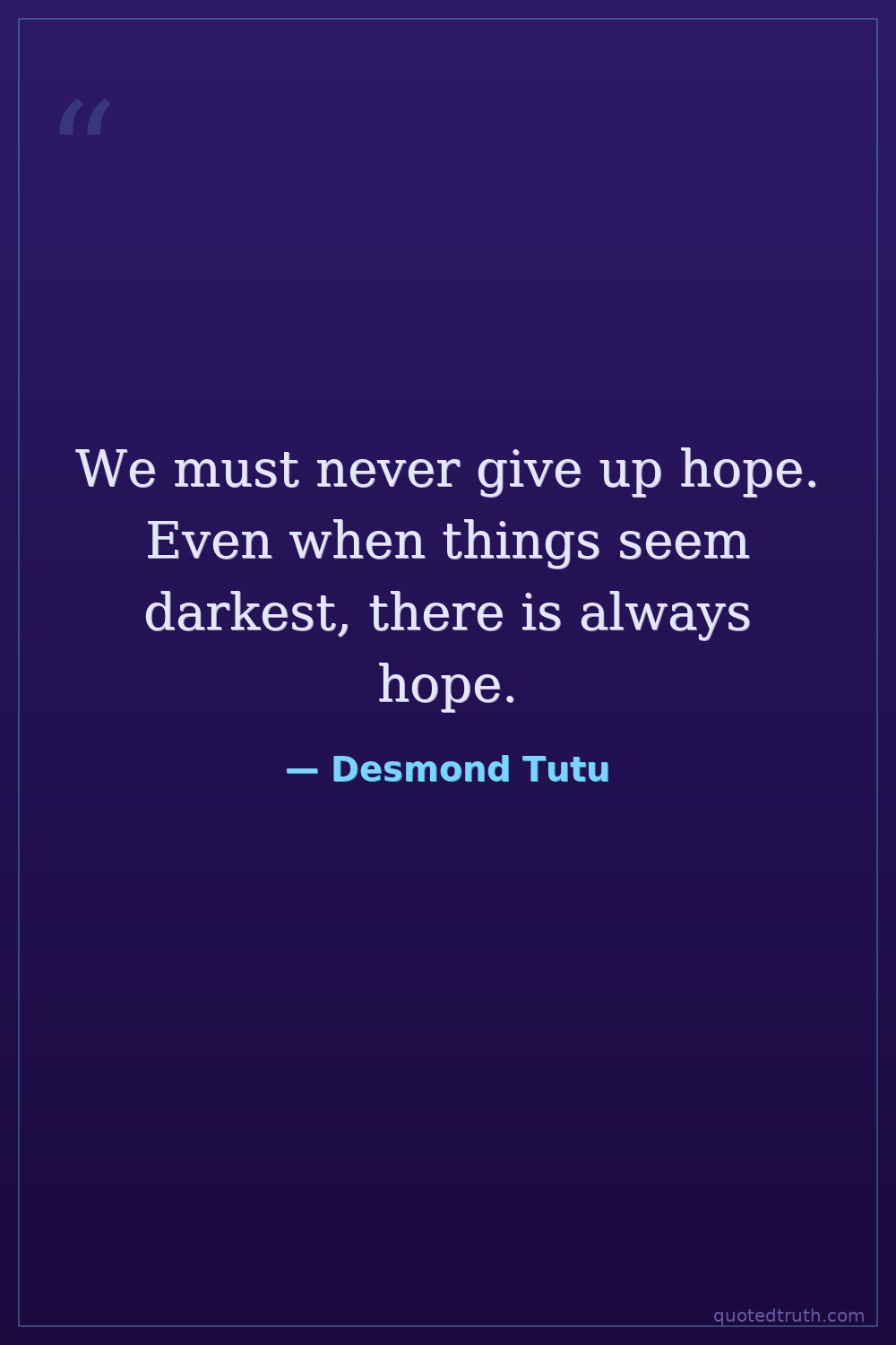We must never give up hope. Even when things seem darkest, there is always hope.