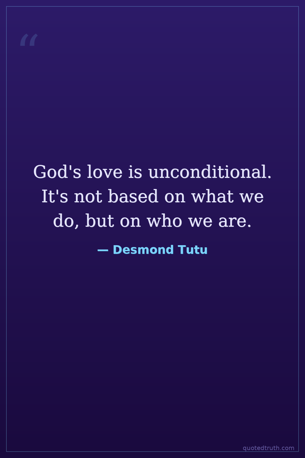 God's love is unconditional. It's not based on what we do, but on who we are.