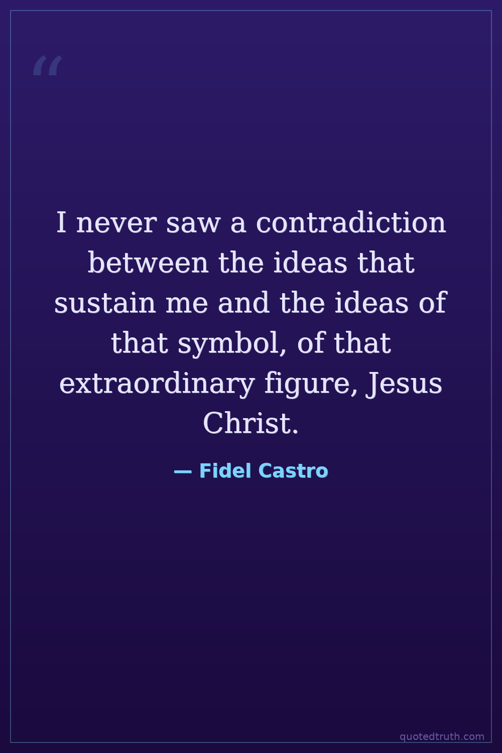 I never saw a contradiction between the ideas that sustain me and the ideas of that symbol, of that extraordinary figure, Jesus Christ.