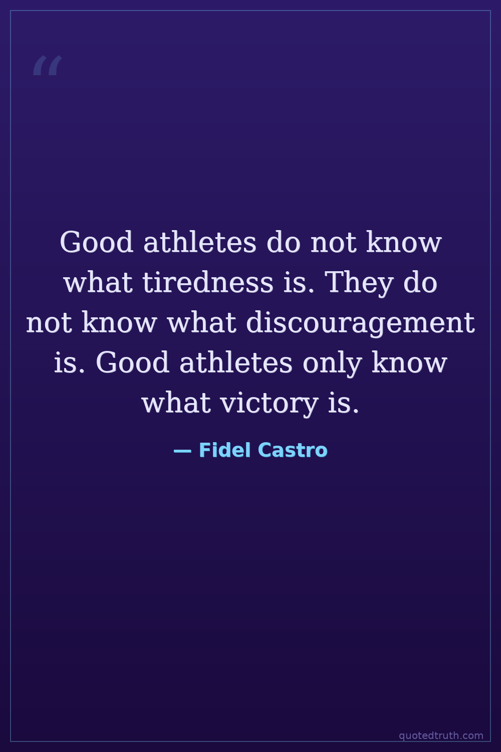 Good athletes do not know what tiredness is. They do not know what discouragement is. Good athletes only know what victory is.
