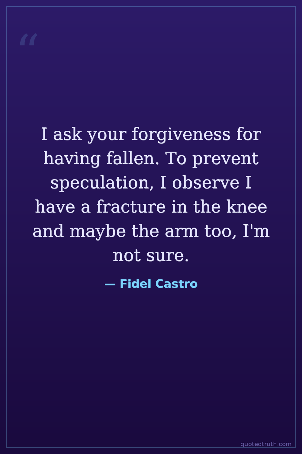 I ask your forgiveness for having fallen. To prevent speculation, I observe I have a fracture in the knee and maybe the arm too, I'm not sure.