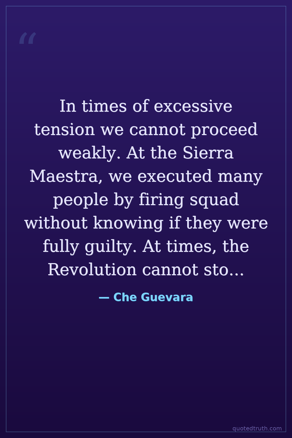 In times of excessive tension we cannot proceed weakly. At the Sierra Maestra, we executed many people by firing squad without knowing if they were fully guilty. At times, the Revolution cannot stop to conduct much investigation; it has the obligation to triumph.
