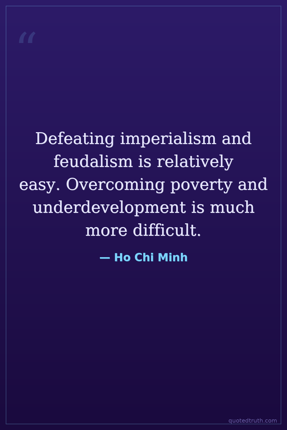 Defeating imperialism and feudalism is relatively easy. Overcoming poverty and underdevelopment is much more difficult.
