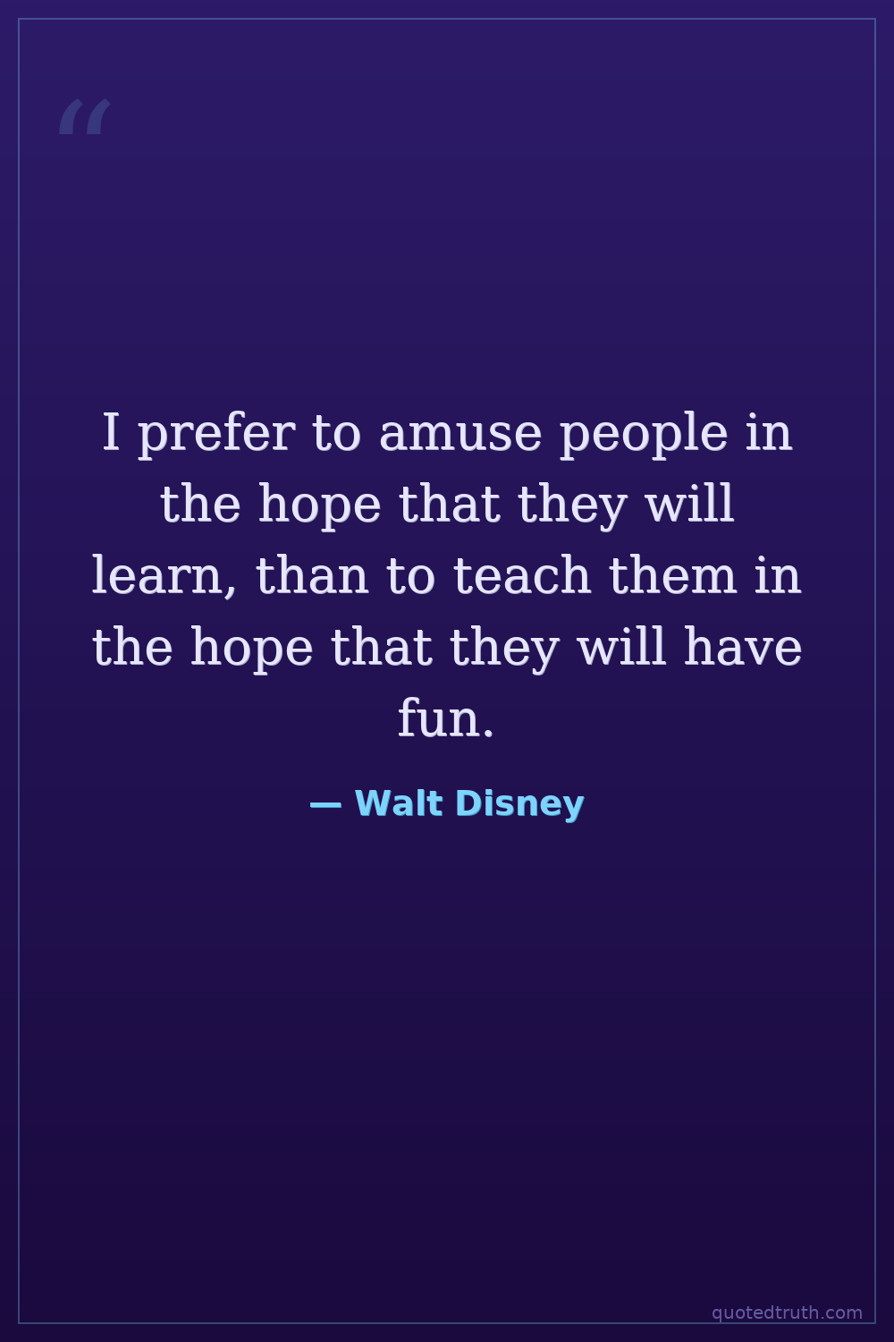 I prefer to amuse people in the hope that they will learn, than to teach them in the hope that they will have fun.