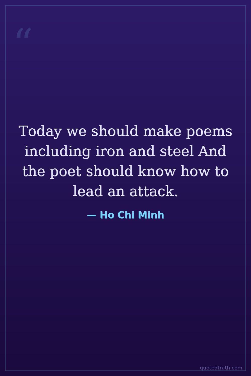 Today we should make poems including iron and steel And the poet should know how to lead an attack.