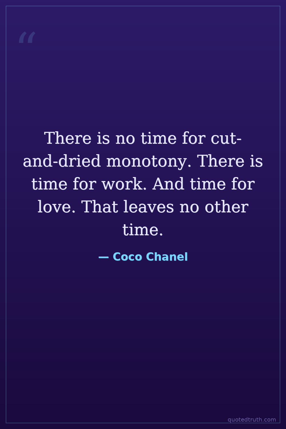 There is no time for cut-and-dried monotony. There is time for work. And time for love. That leaves no other time.
