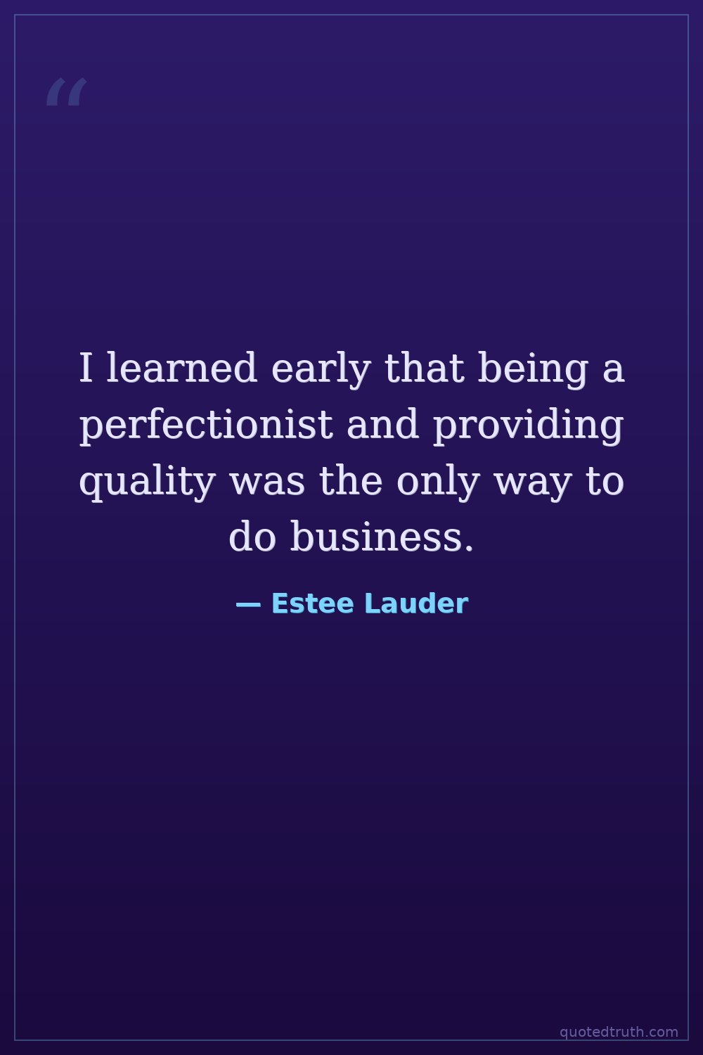 I learned early that being a perfectionist and providing quality was the only way to do business.