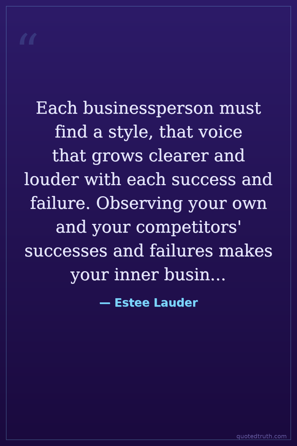 Each businessperson must find a style, that voice that grows clearer and louder with each success and failure. Observing your own and your competitors' successes and failures makes your inner business voice more sure and vivid.