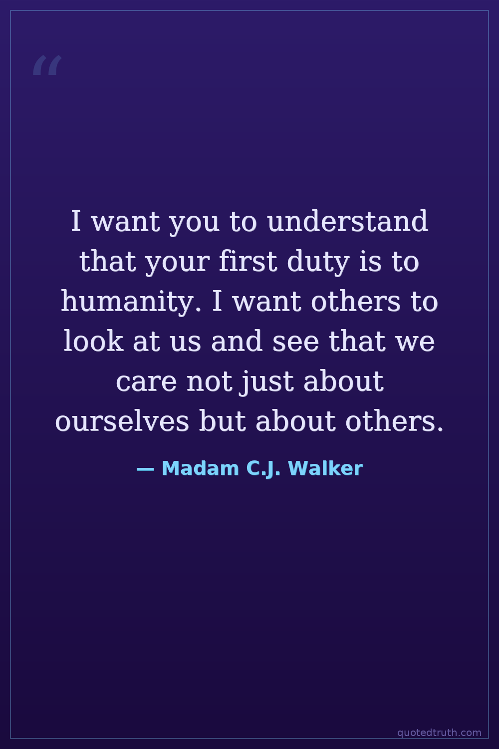 I want you to understand that your first duty is to humanity. I want others to look at us and see that we care not just about ourselves but about others.