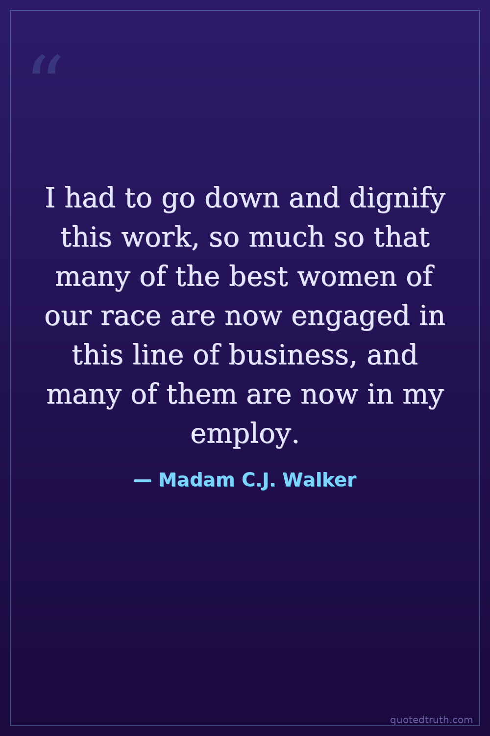 I had to go down and dignify this work, so much so that many of the best women of our race are now engaged in this line of business, and many of them are now in my employ.