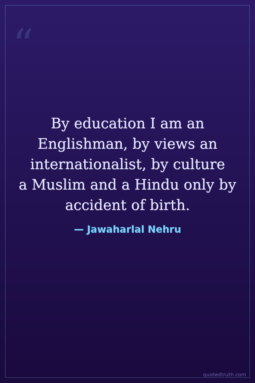 By education I am an Englishman, by views an internationalist, by culture a Muslim and a Hindu only by accident of birth.