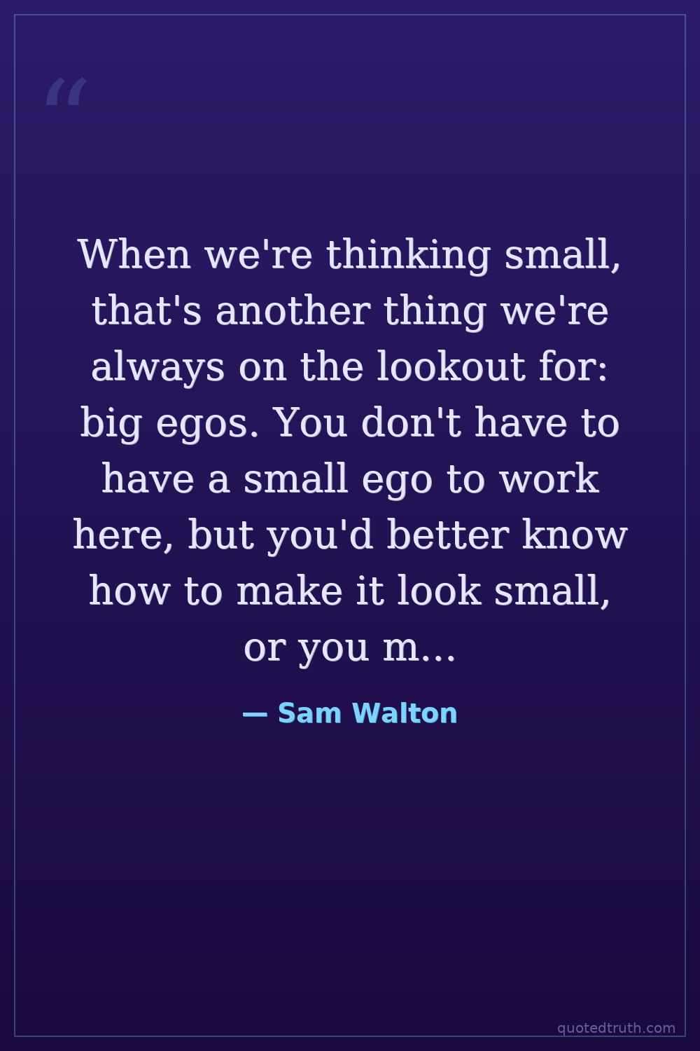 When we're thinking small, that's another thing we're always on the lookout for: big egos. You don't have to have a small ego to work here, but you'd better know how to make it look small, or you might wind up in trouble.