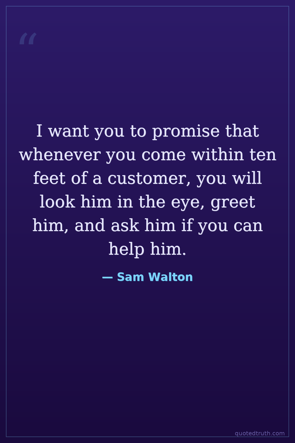 I want you to promise that whenever you come within ten feet of a customer, you will look him in the eye, greet him, and ask him if you can help him.