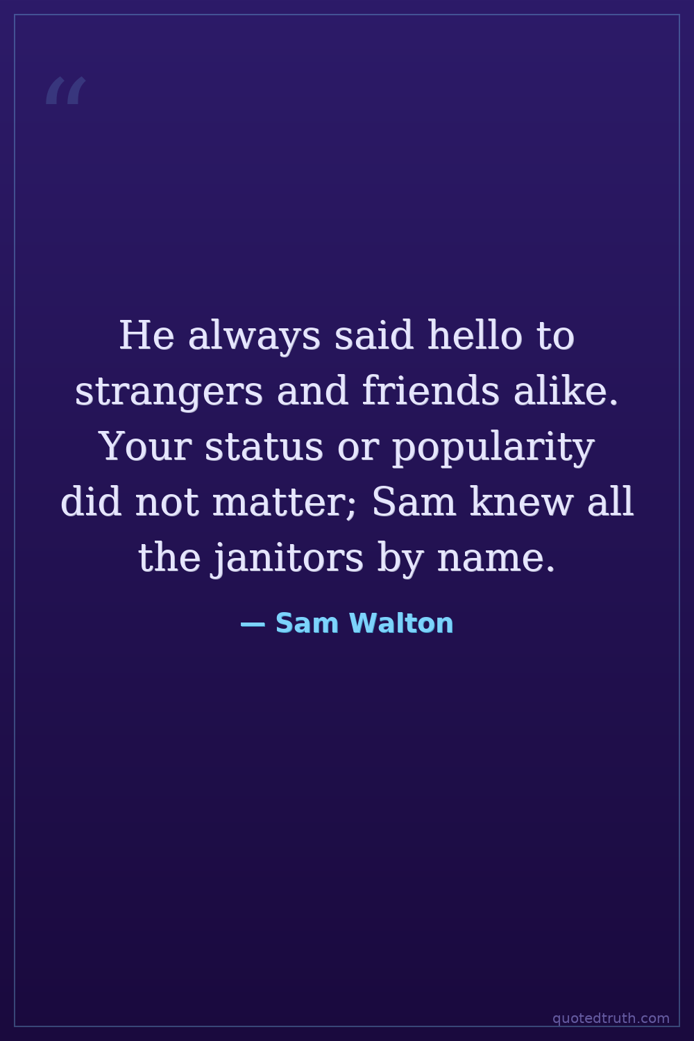 He always said hello to strangers and friends alike. Your status or popularity did not matter; Sam knew all the janitors by name.
