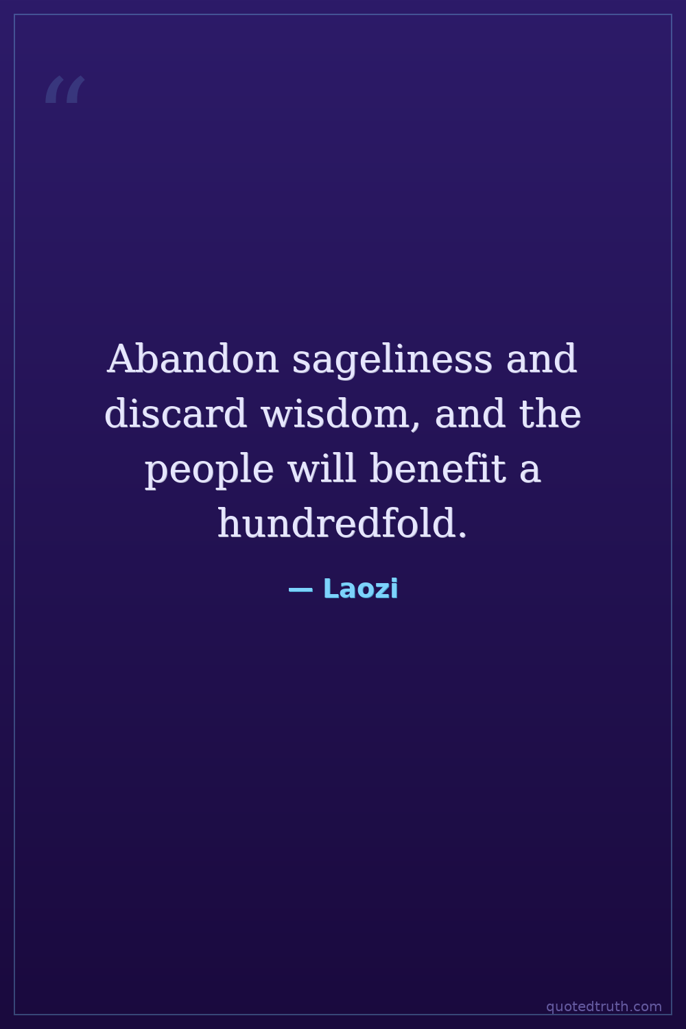 Abandon sageliness and discard wisdom, and the people will benefit a hundredfold.