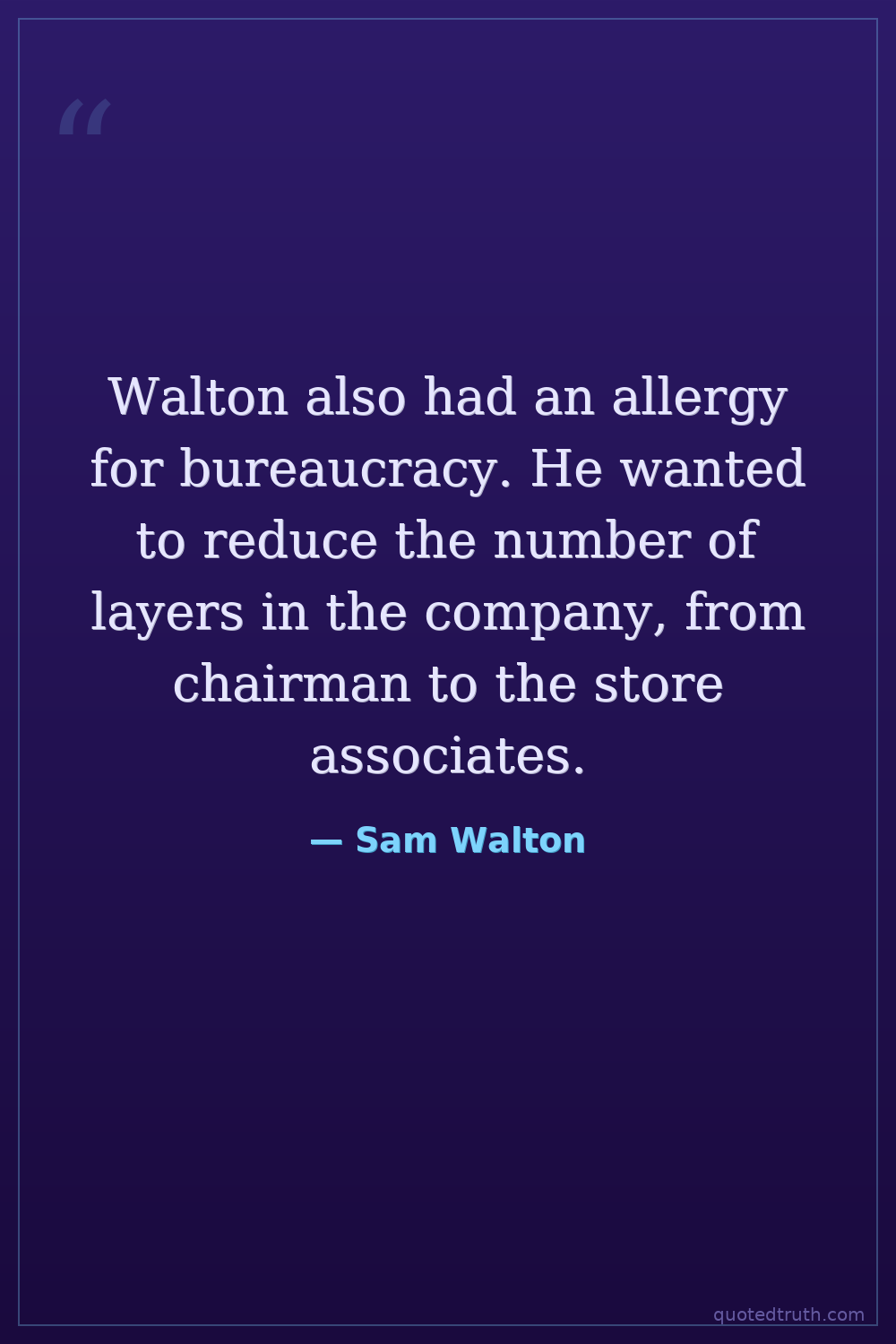 Walton also had an allergy for bureaucracy. He wanted to reduce the number of layers in the company, from chairman to the store associates.