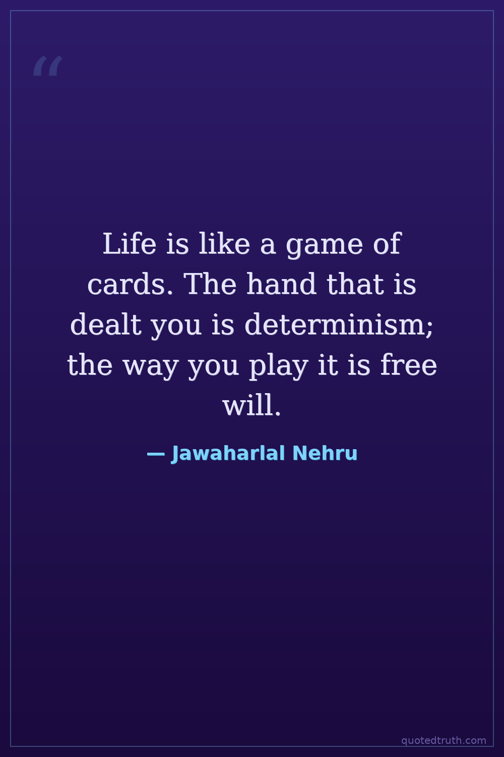 Life is like a game of cards. The hand that is dealt you is determinism; the way you play it is free will.