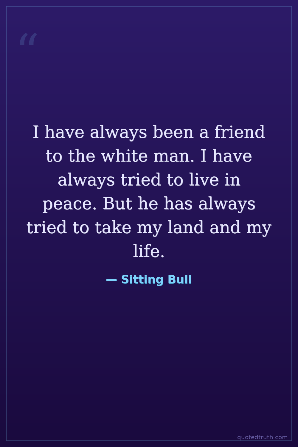 I have always been a friend to the white man. I have always tried to live in peace. But he has always tried to take my land and my life.
