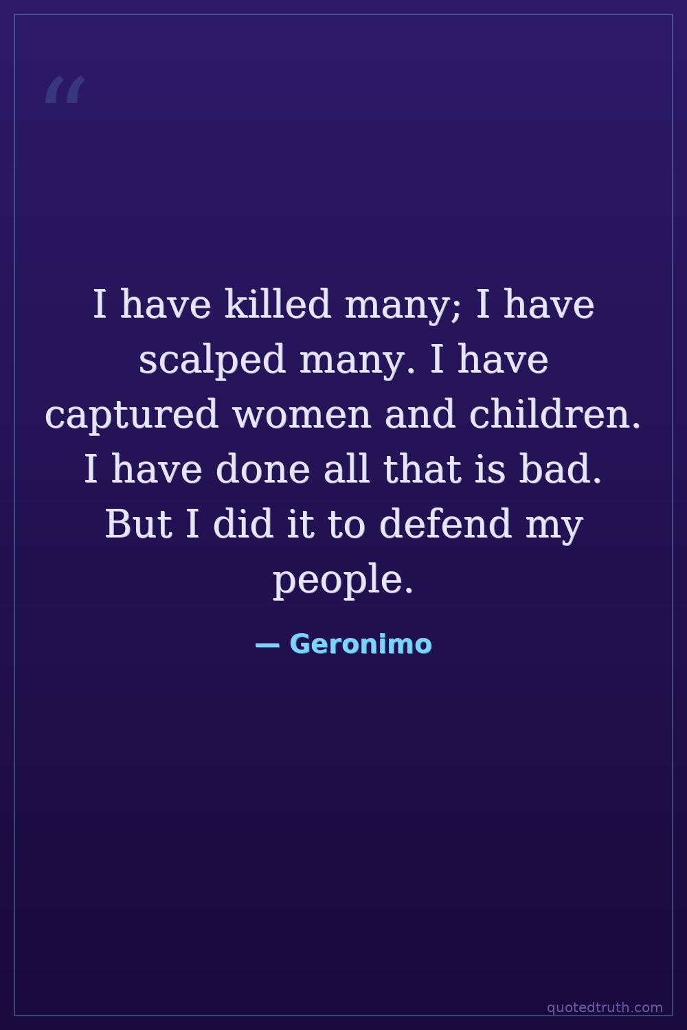 I have killed many; I have scalped many. I have captured women and children. I have done all that is bad. But I did it to defend my people.