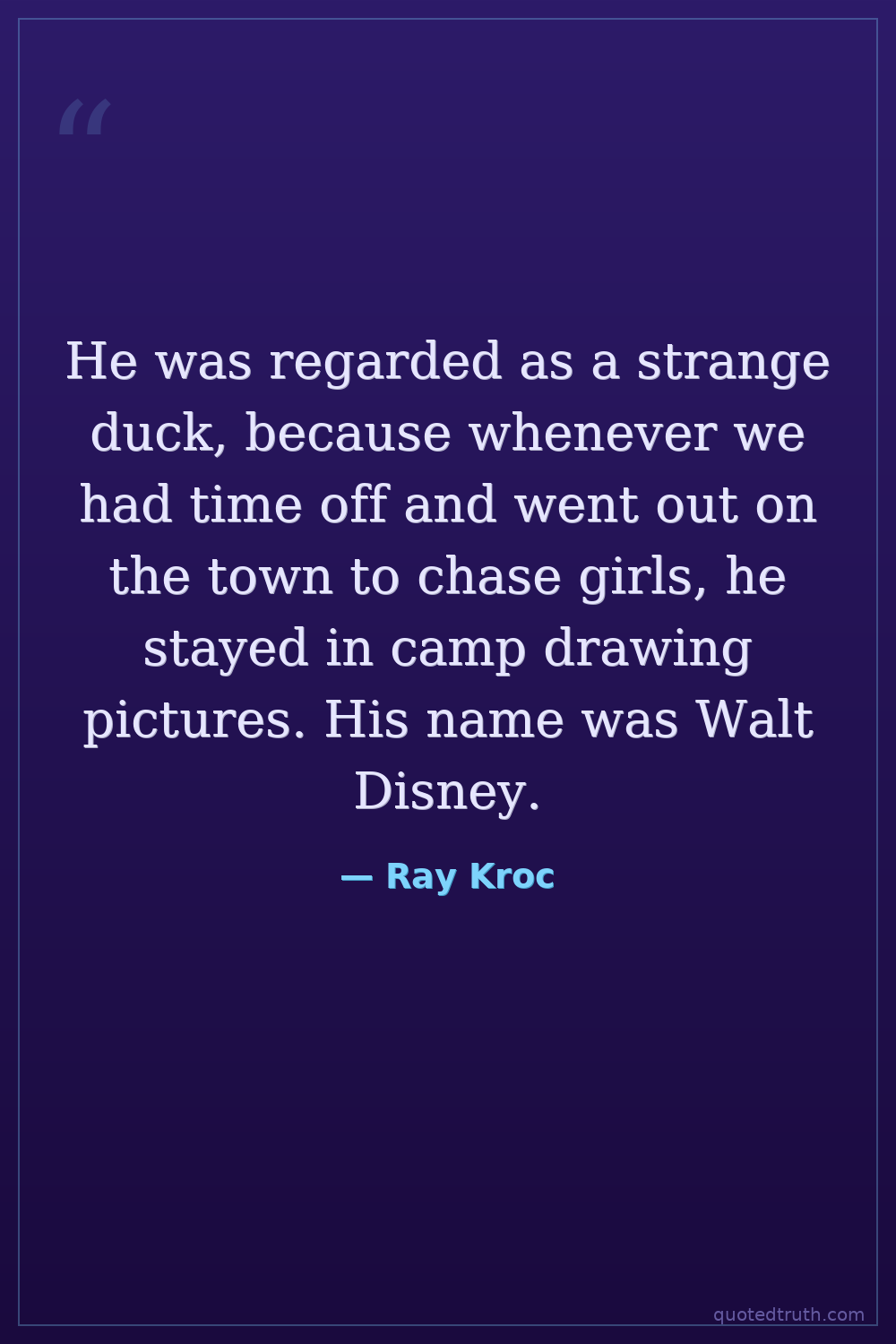 He was regarded as a strange duck, because whenever we had time off and went out on the town to chase girls, he stayed in camp drawing pictures. His name was Walt Disney.