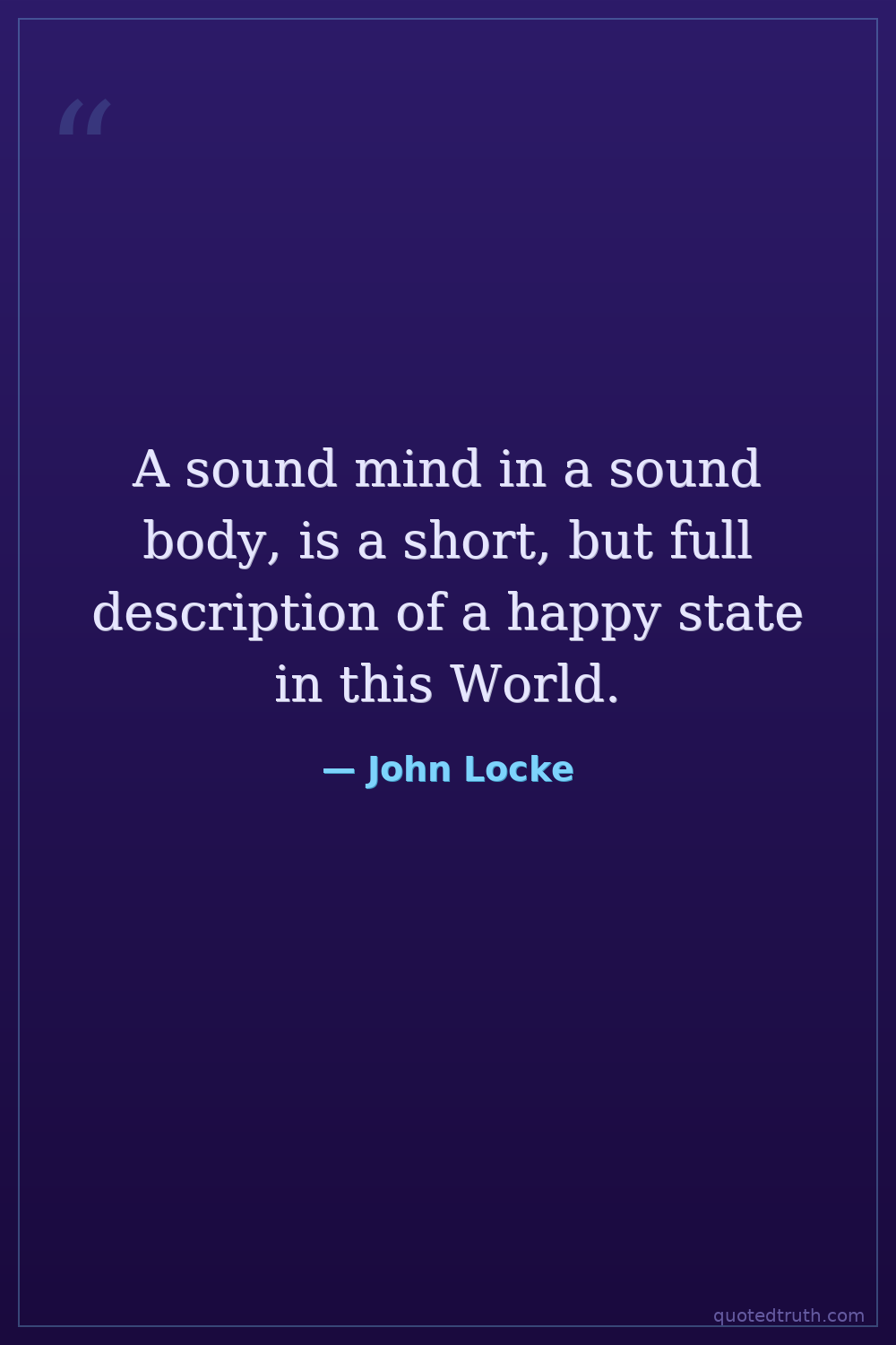 A sound mind in a sound body, is a short, but full description of a happy state in this World.