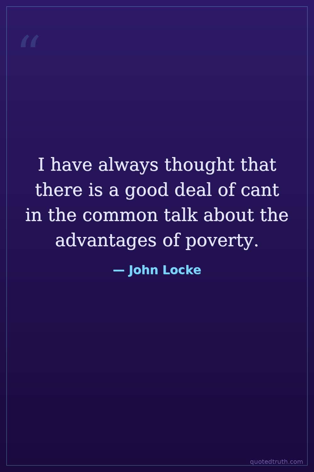 I have always thought that there is a good deal of cant in the common talk about the advantages of poverty.