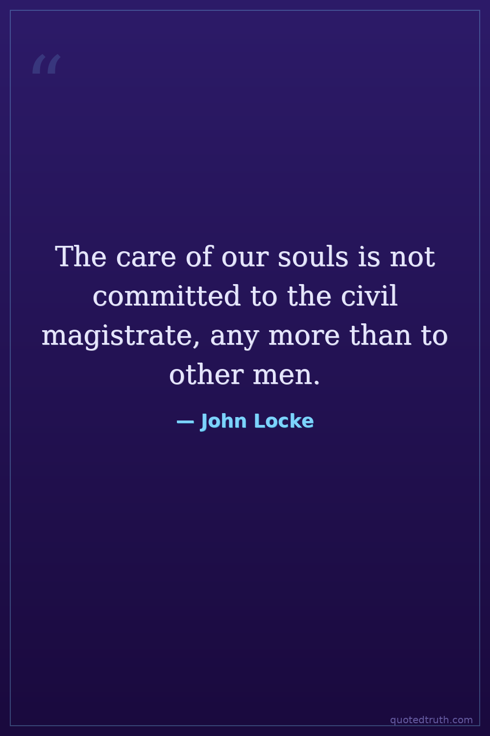 The care of our souls is not committed to the civil magistrate, any more than to other men.