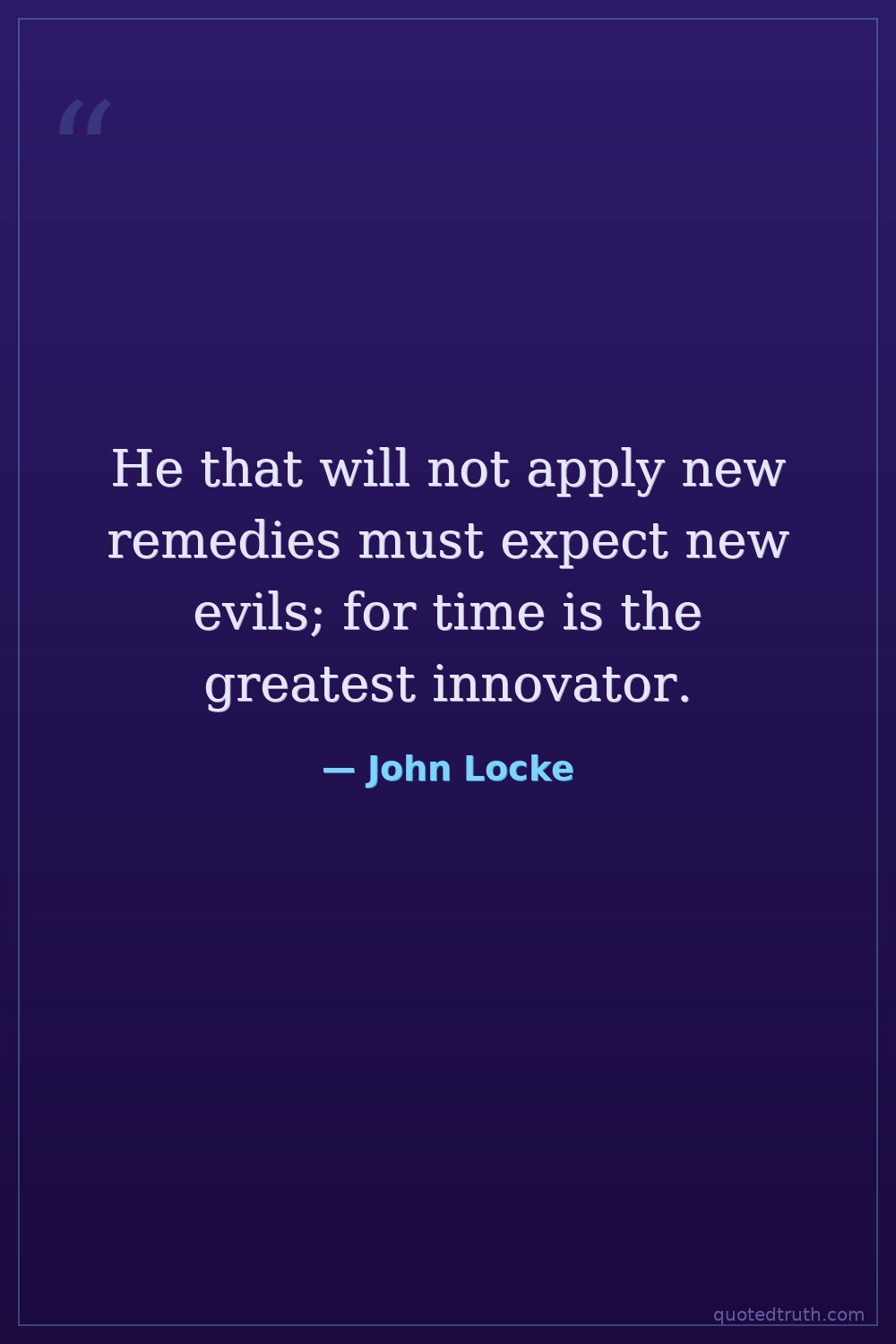 He that will not apply new remedies must expect new evils; for time is the greatest innovator.
