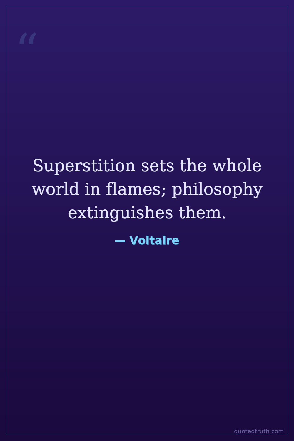 Superstition sets the whole world in flames; philosophy extinguishes them.