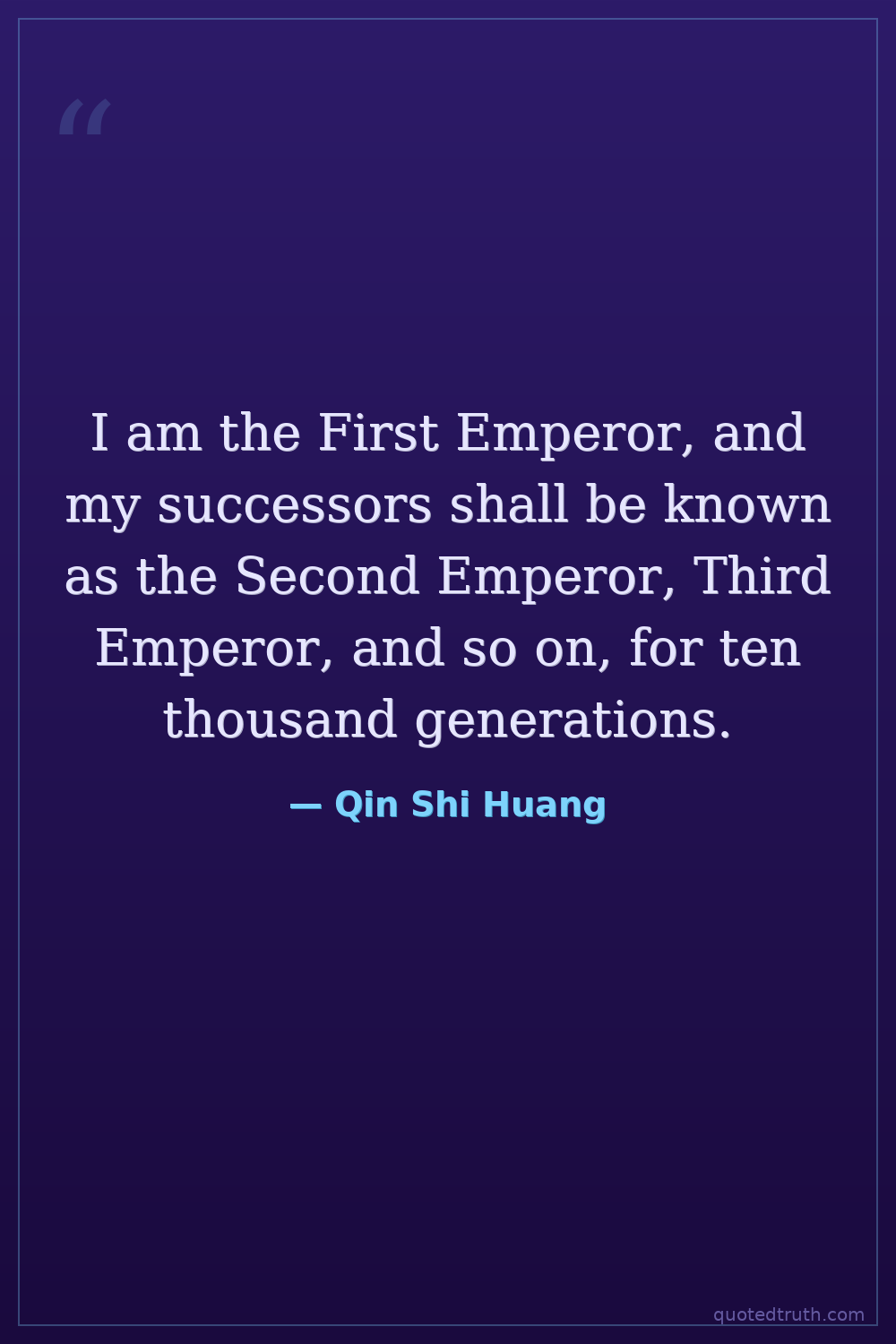 I am the First Emperor, and my successors shall be known as the Second Emperor, Third Emperor, and so on, for ten thousand generations.