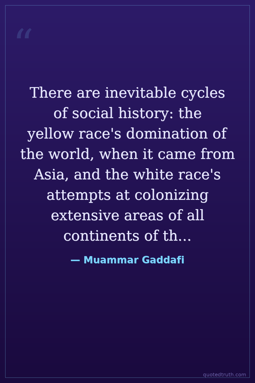 There are inevitable cycles of social history: the yellow race's domination of the world, when it came from Asia, and the white race's attempts at colonizing extensive areas of all continents of the world. Now, it is the turn of the black race to prevail in the world.