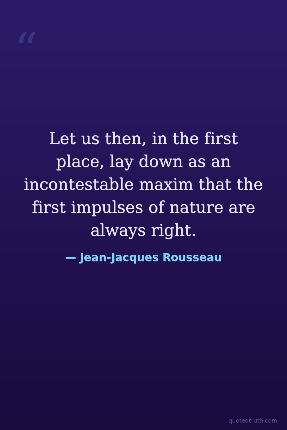 Let us then, in the first place, lay down as an incontestable maxim that the first impulses of nature are always right.