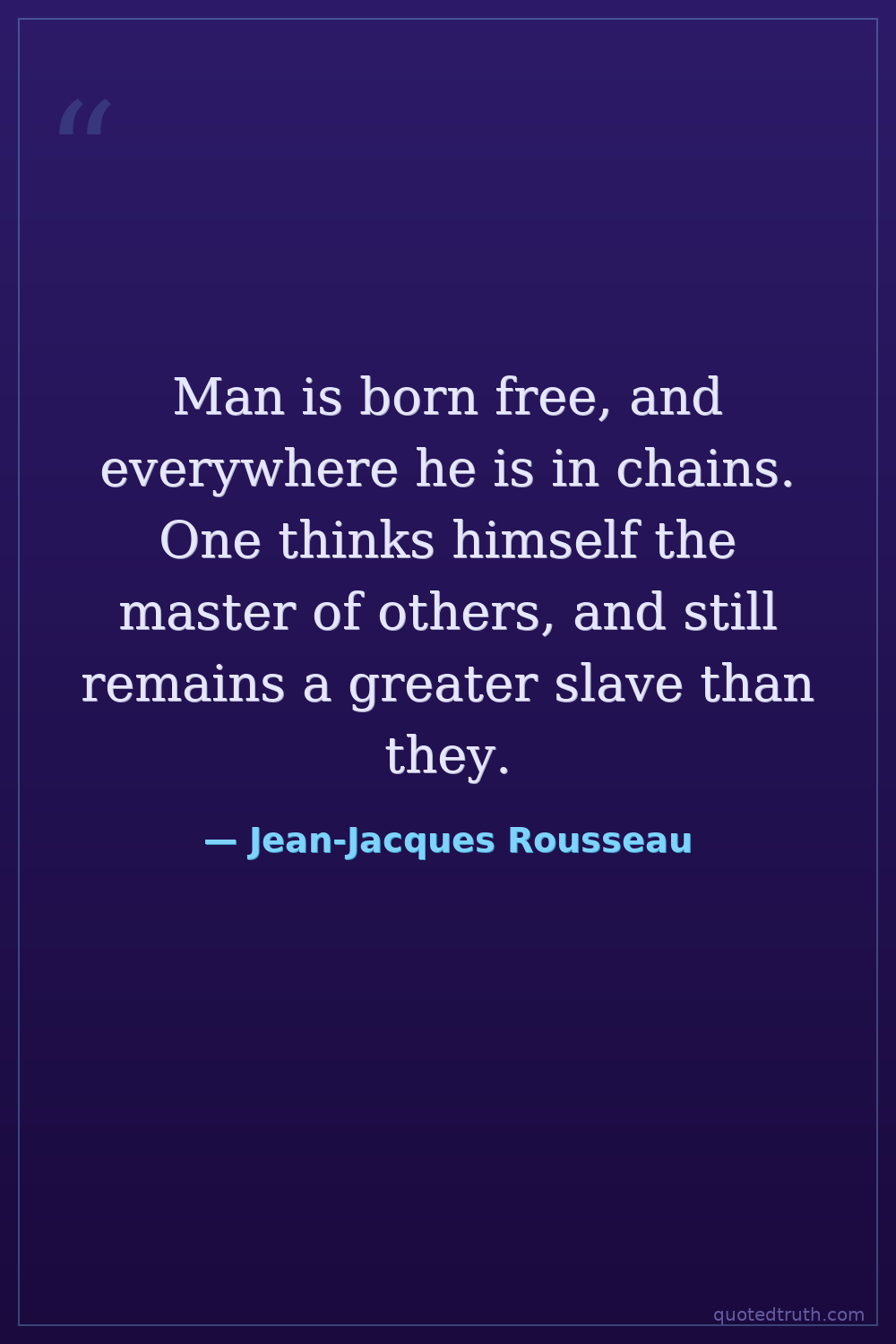 Man is born free, and everywhere he is in chains. One thinks himself the master of others, and still remains a greater slave than they.