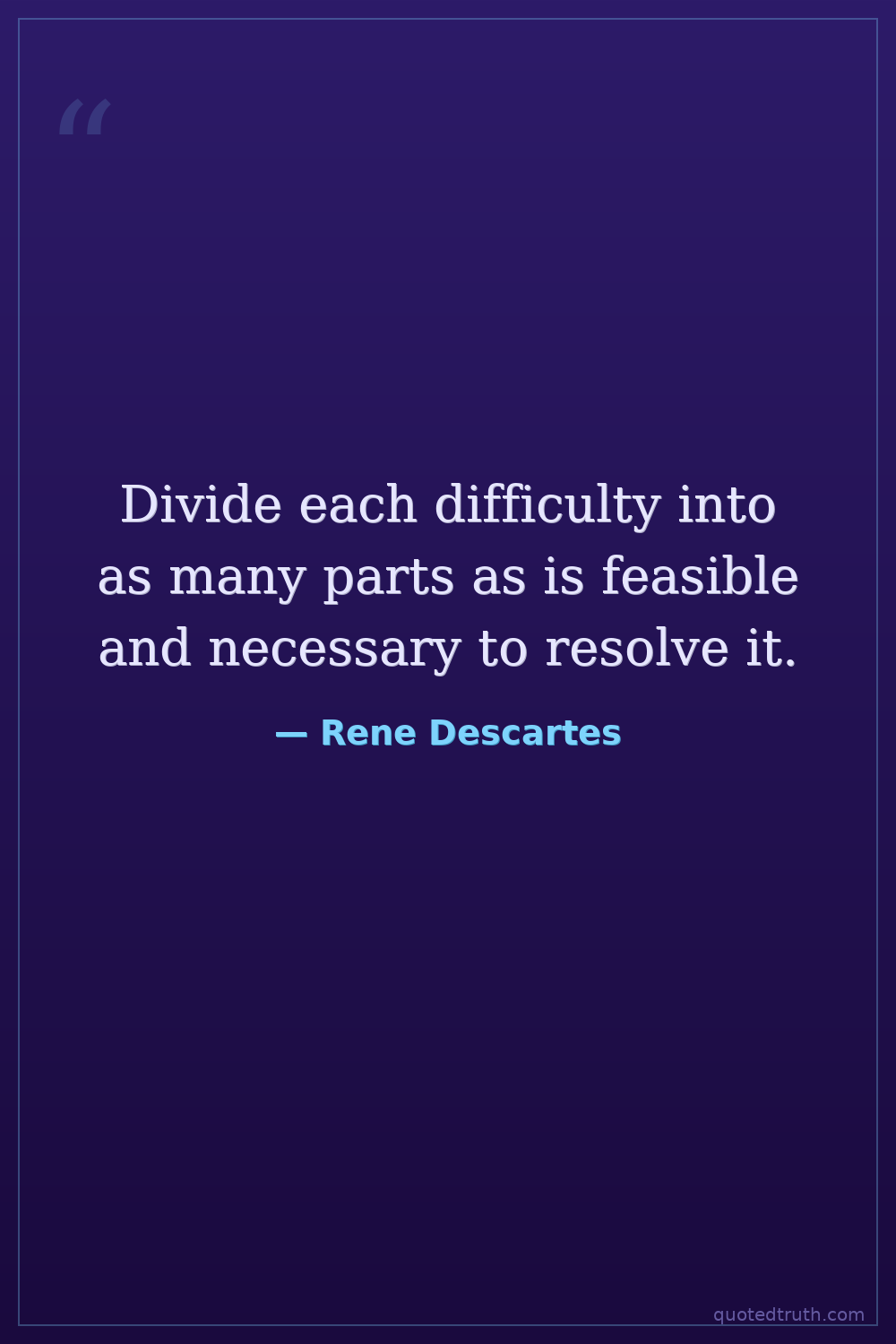 Divide each difficulty into as many parts as is feasible and necessary to resolve it.