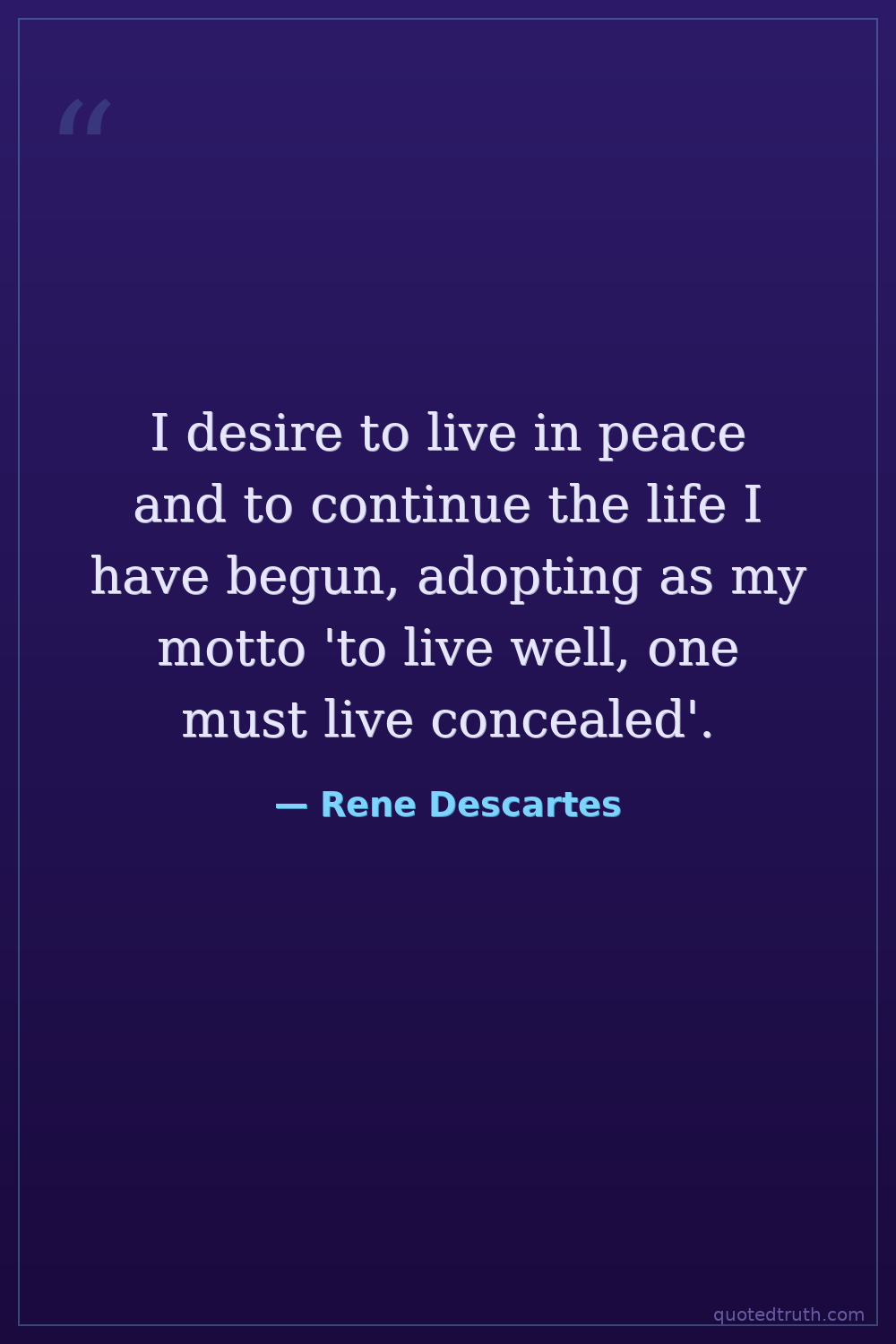 I desire to live in peace and to continue the life I have begun, adopting as my motto 'to live well, one must live concealed'.