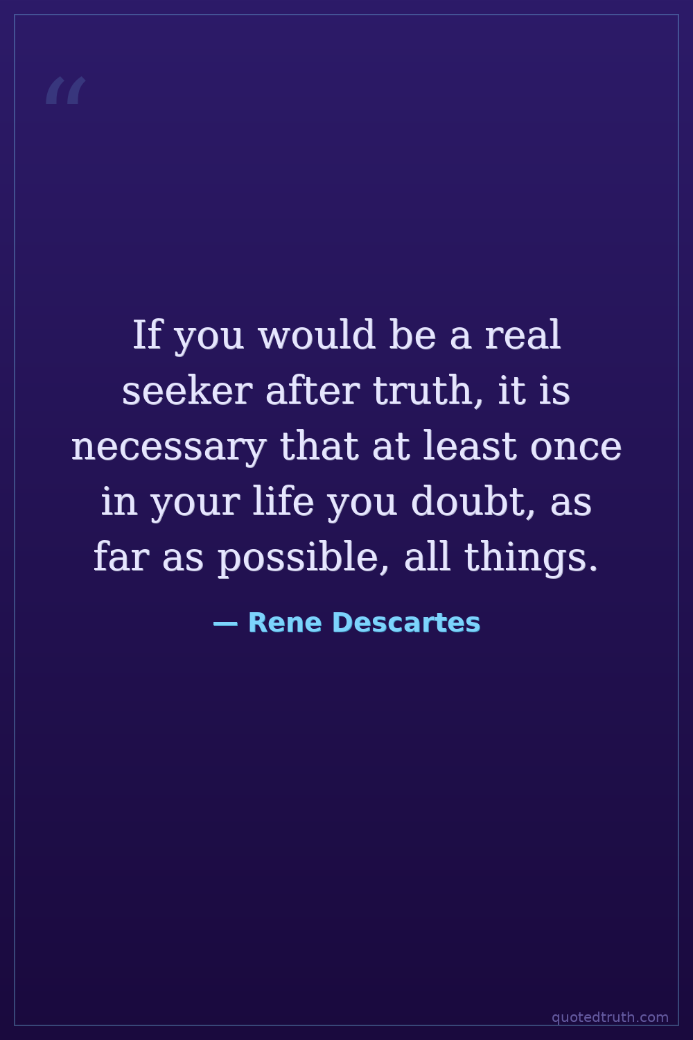 If you would be a real seeker after truth, it is necessary that at least once in your life you doubt, as far as possible, all things.