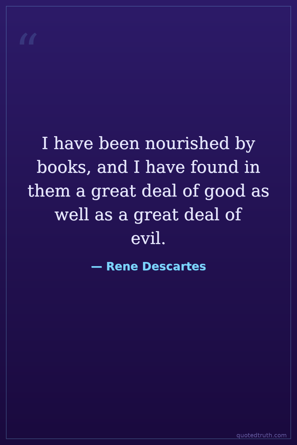 I have been nourished by books, and I have found in them a great deal of good as well as a great deal of evil.