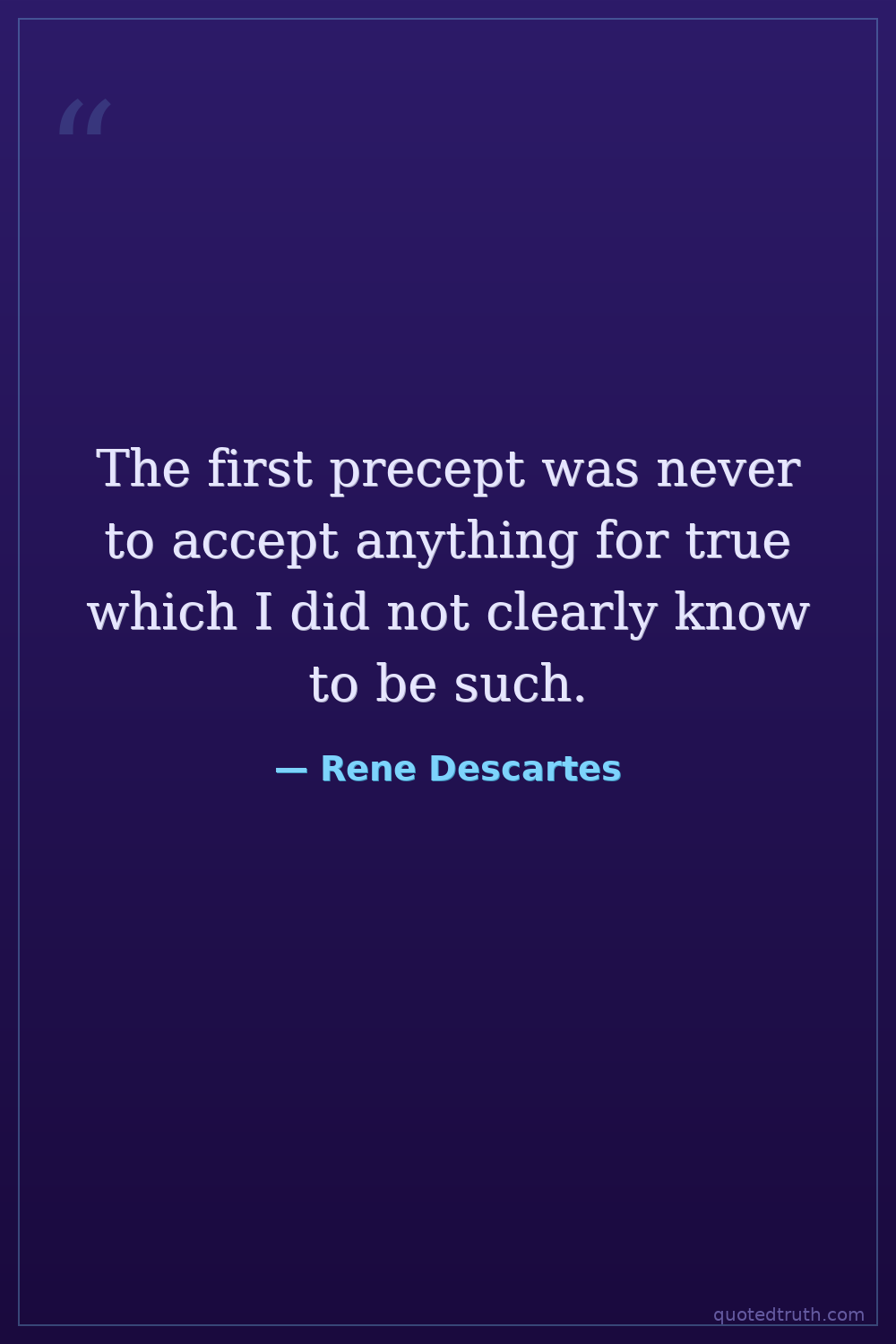 The first precept was never to accept anything for true which I did not clearly know to be such.