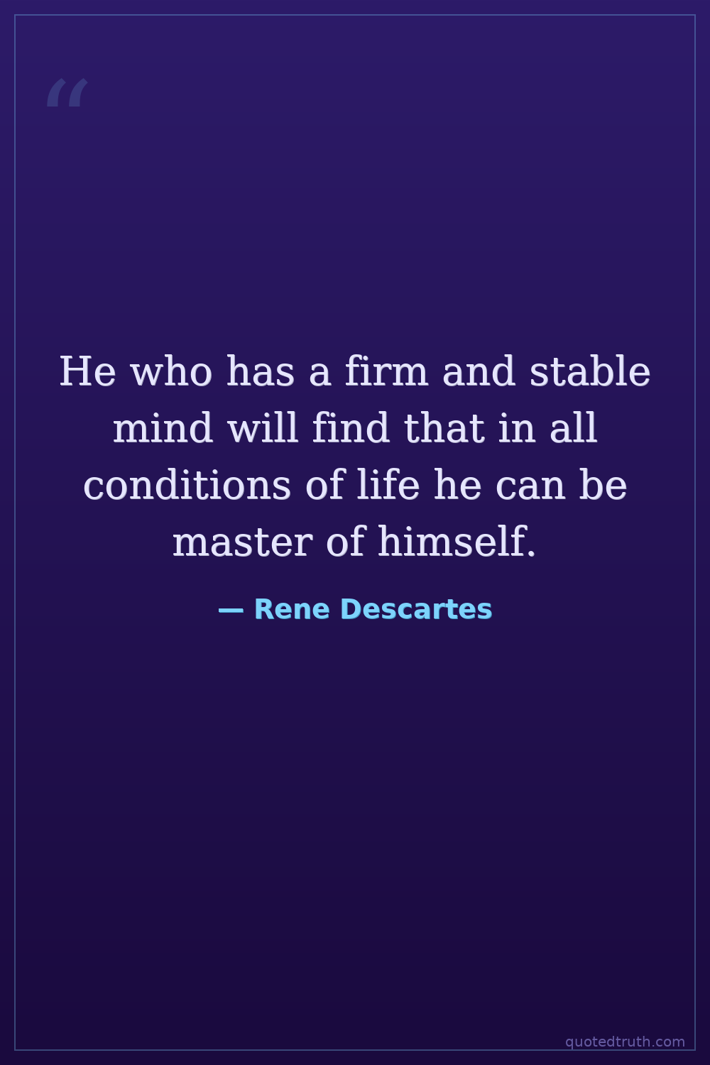 He who has a firm and stable mind will find that in all conditions of life he can be master of himself.