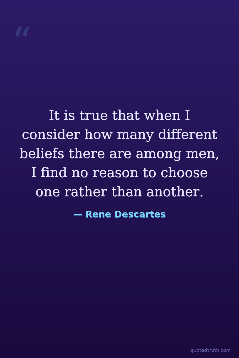 It is true that when I consider how many different beliefs there are among men, I find no reason to choose one rather than another.