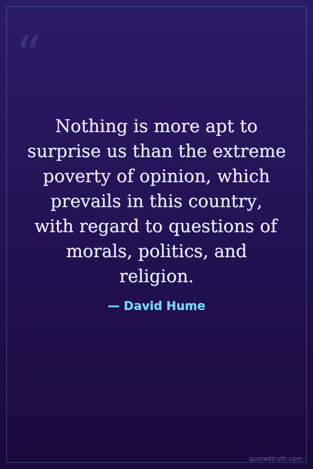 Nothing is more apt to surprise us than the extreme poverty of opinion, which prevails in this country, with regard to questions of morals, politics, and religion.
