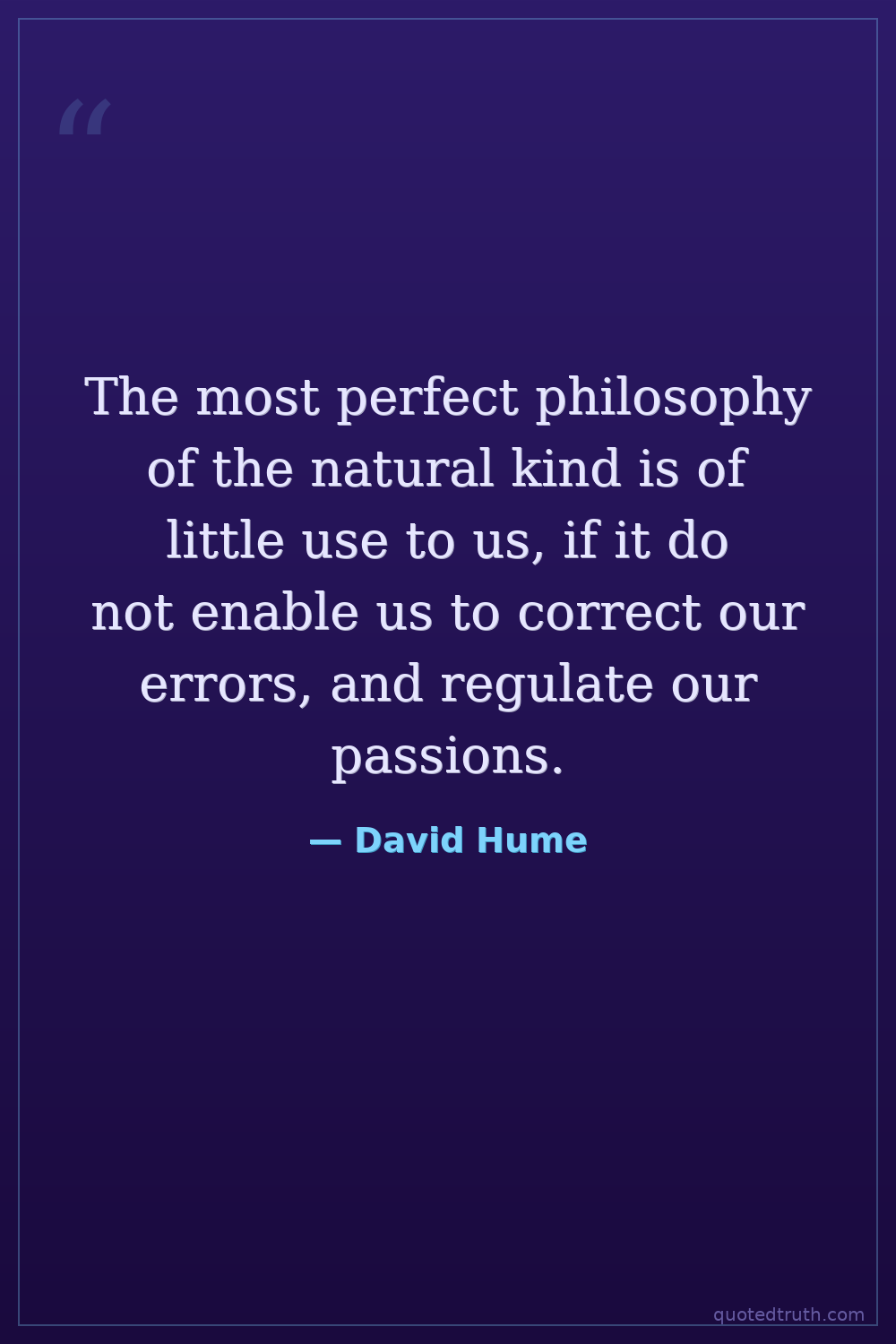 The most perfect philosophy of the natural kind is of little use to us, if it do not enable us to correct our errors, and regulate our passions.