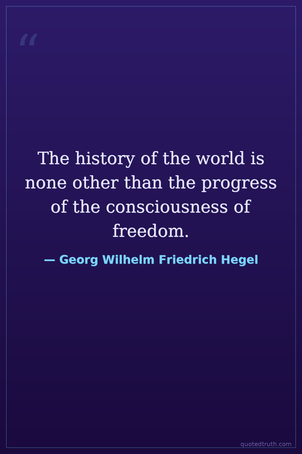 The history of the world is none other than the progress of the consciousness of freedom.