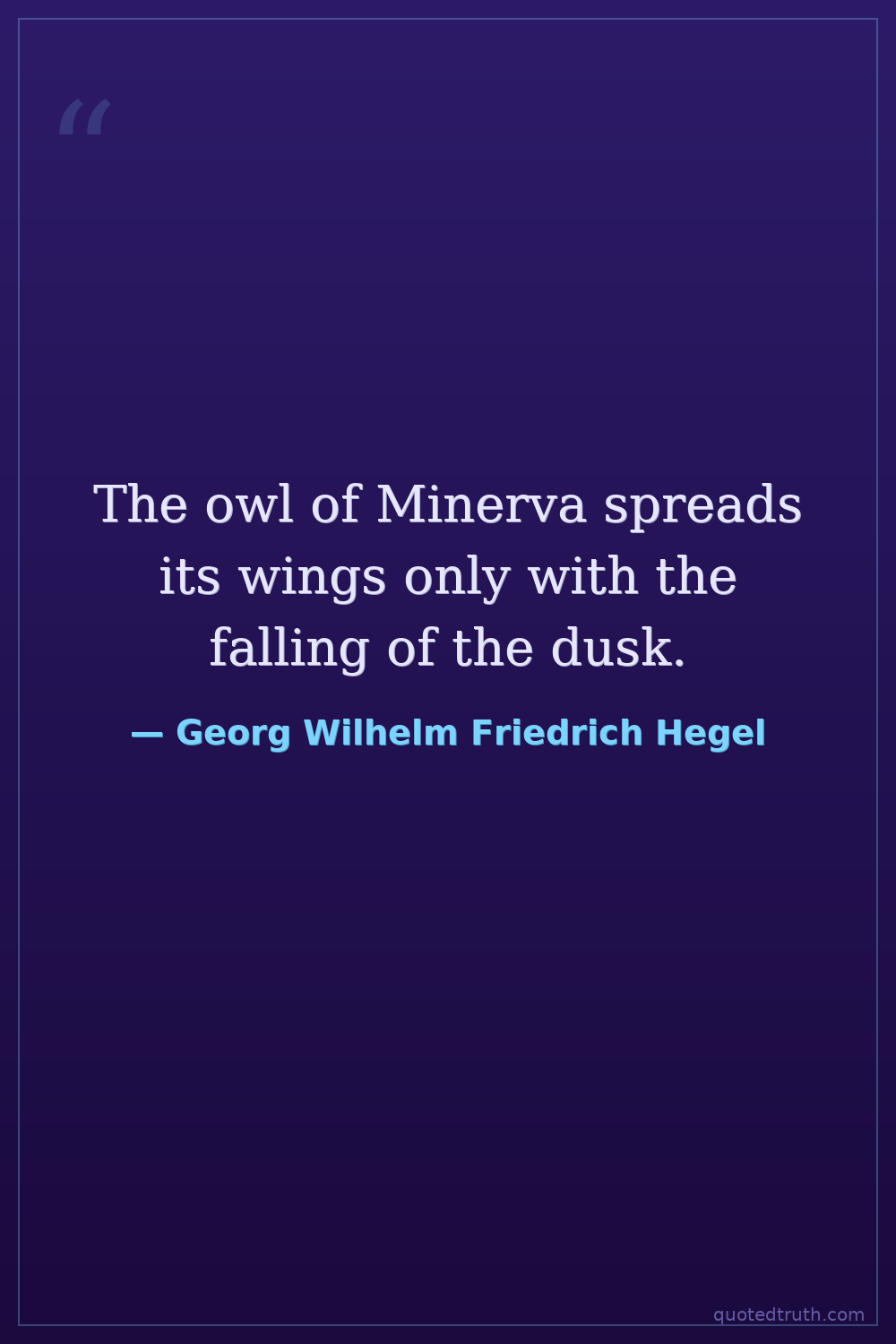 The owl of Minerva spreads its wings only with the falling of the dusk.